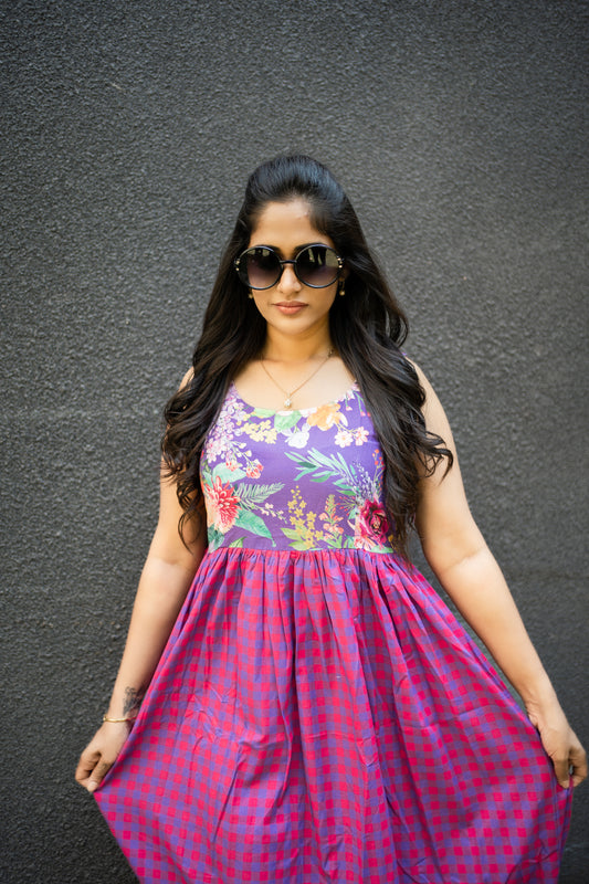 25% OFFFLORA Purple Checks Dress