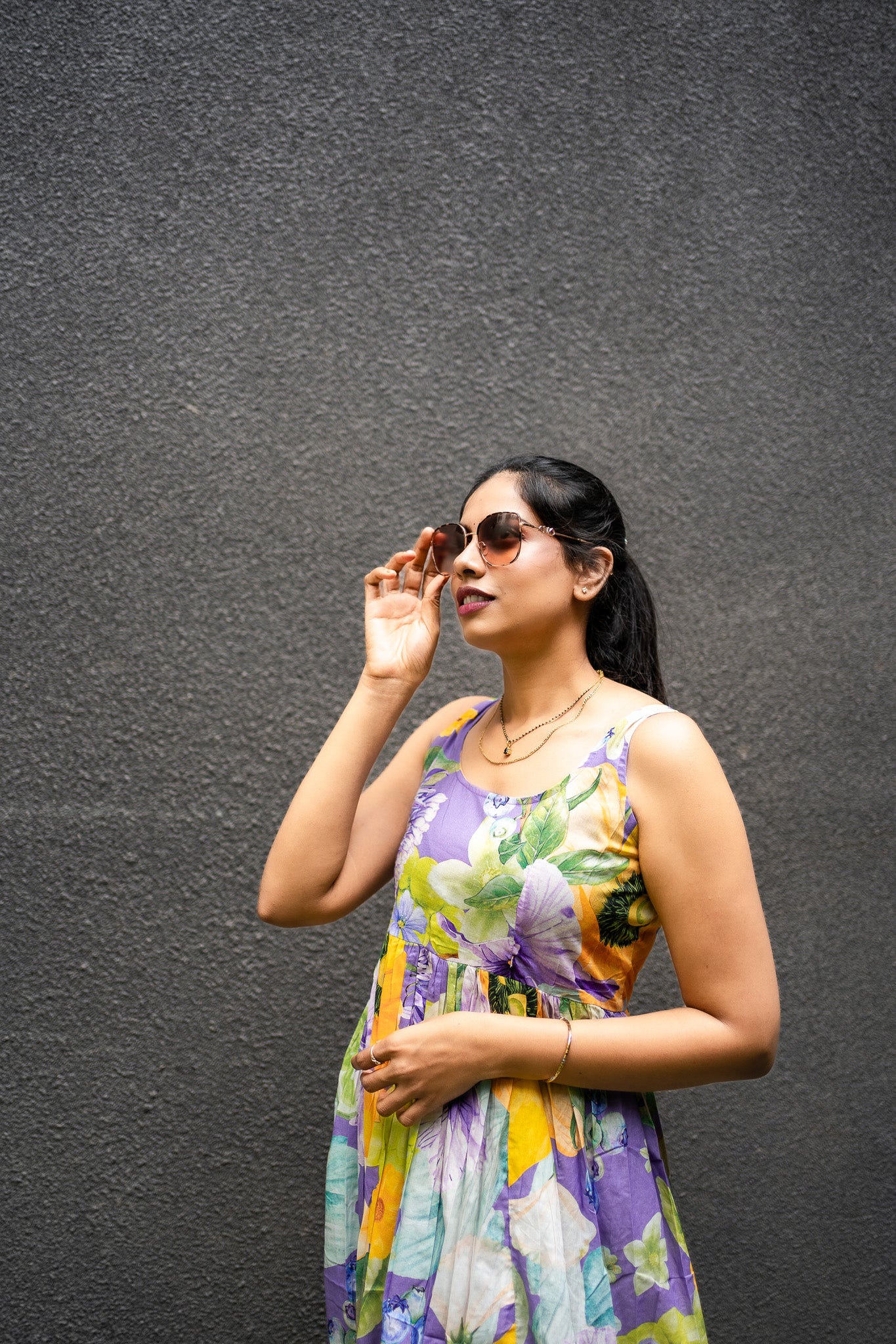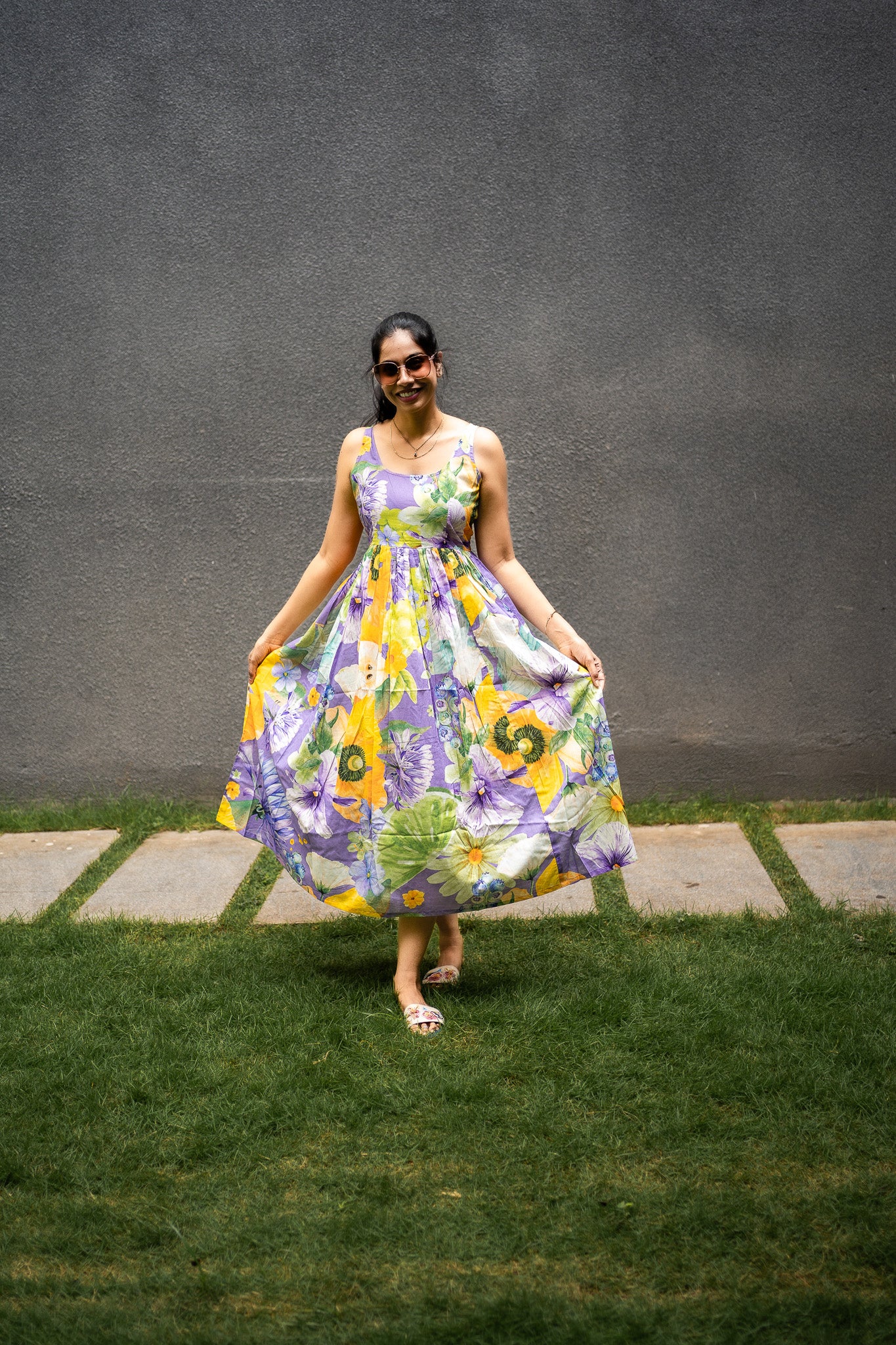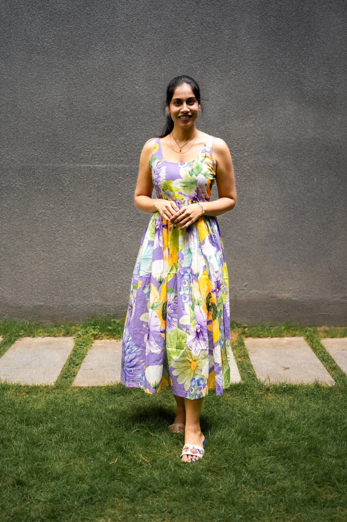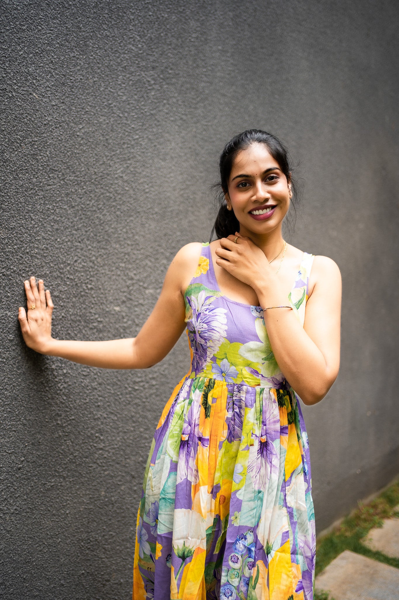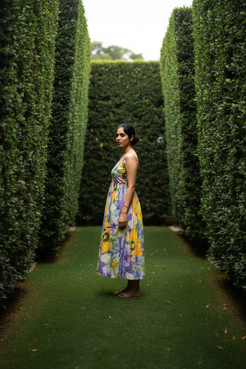 Featuring Violet, green &yellow cotton BIG Bold Fruits and florals in our signature hand drawn prints from FRUVEE Collection.