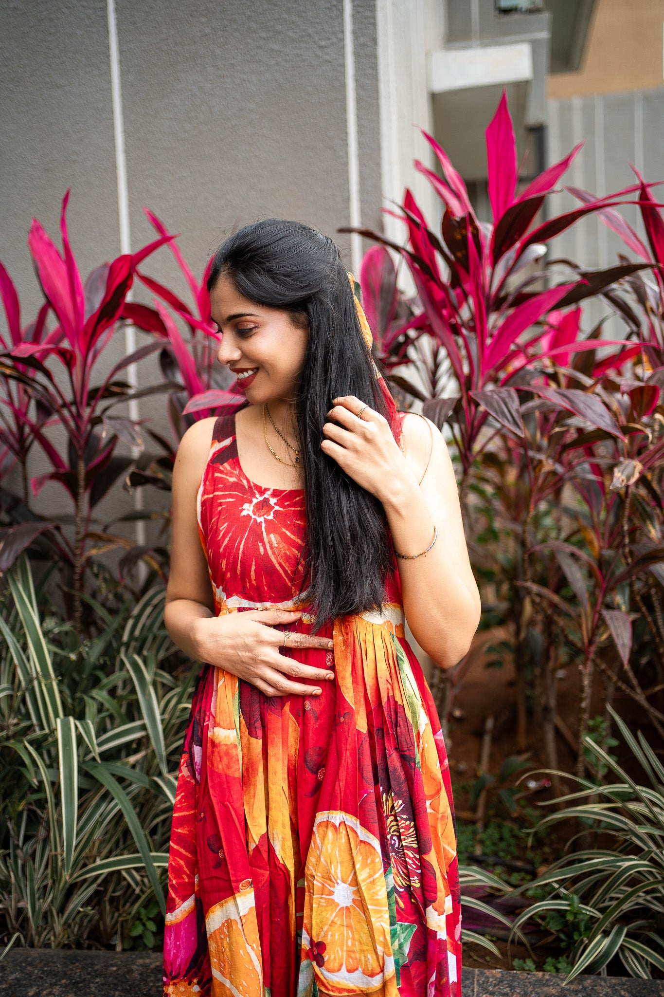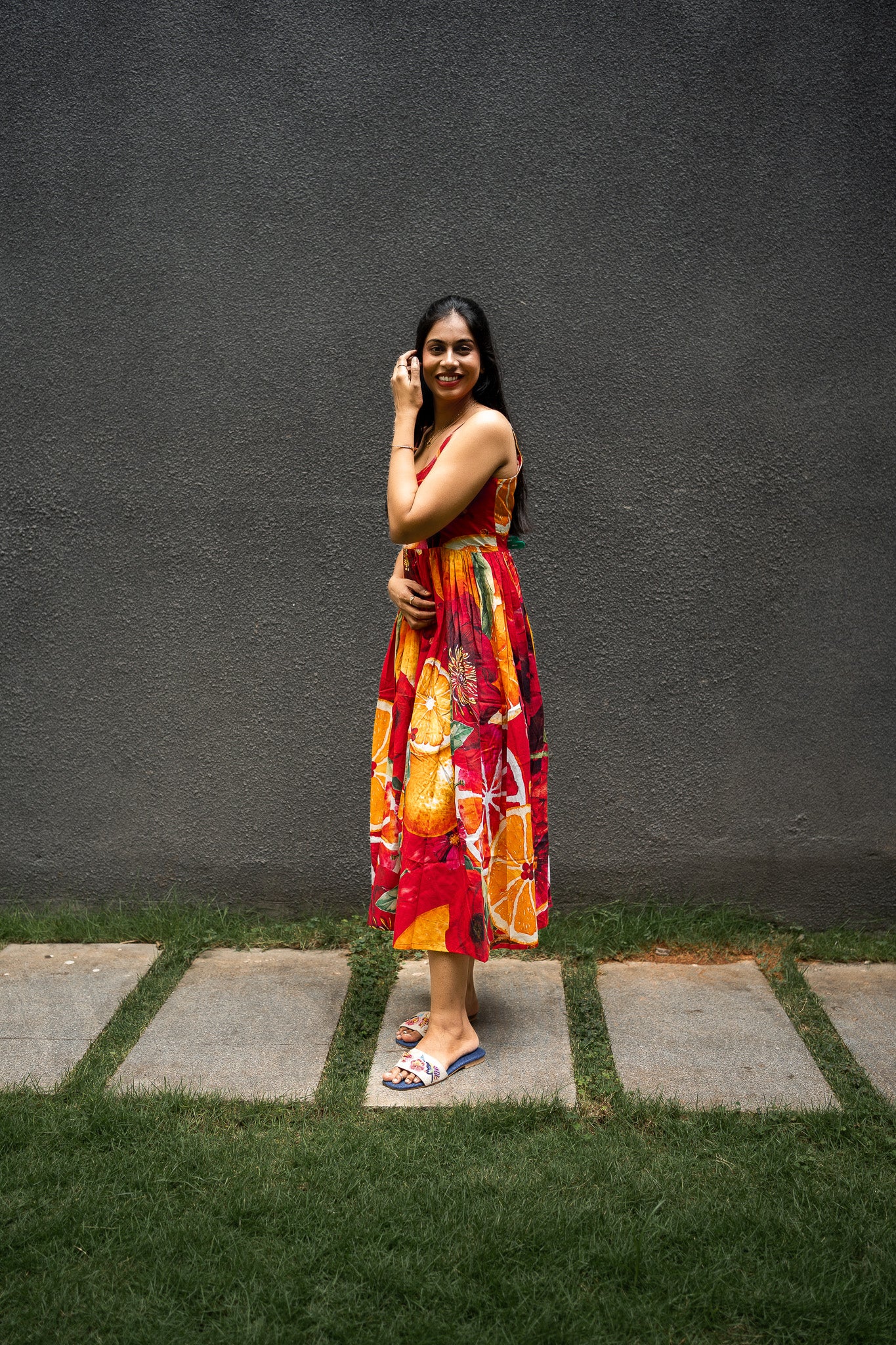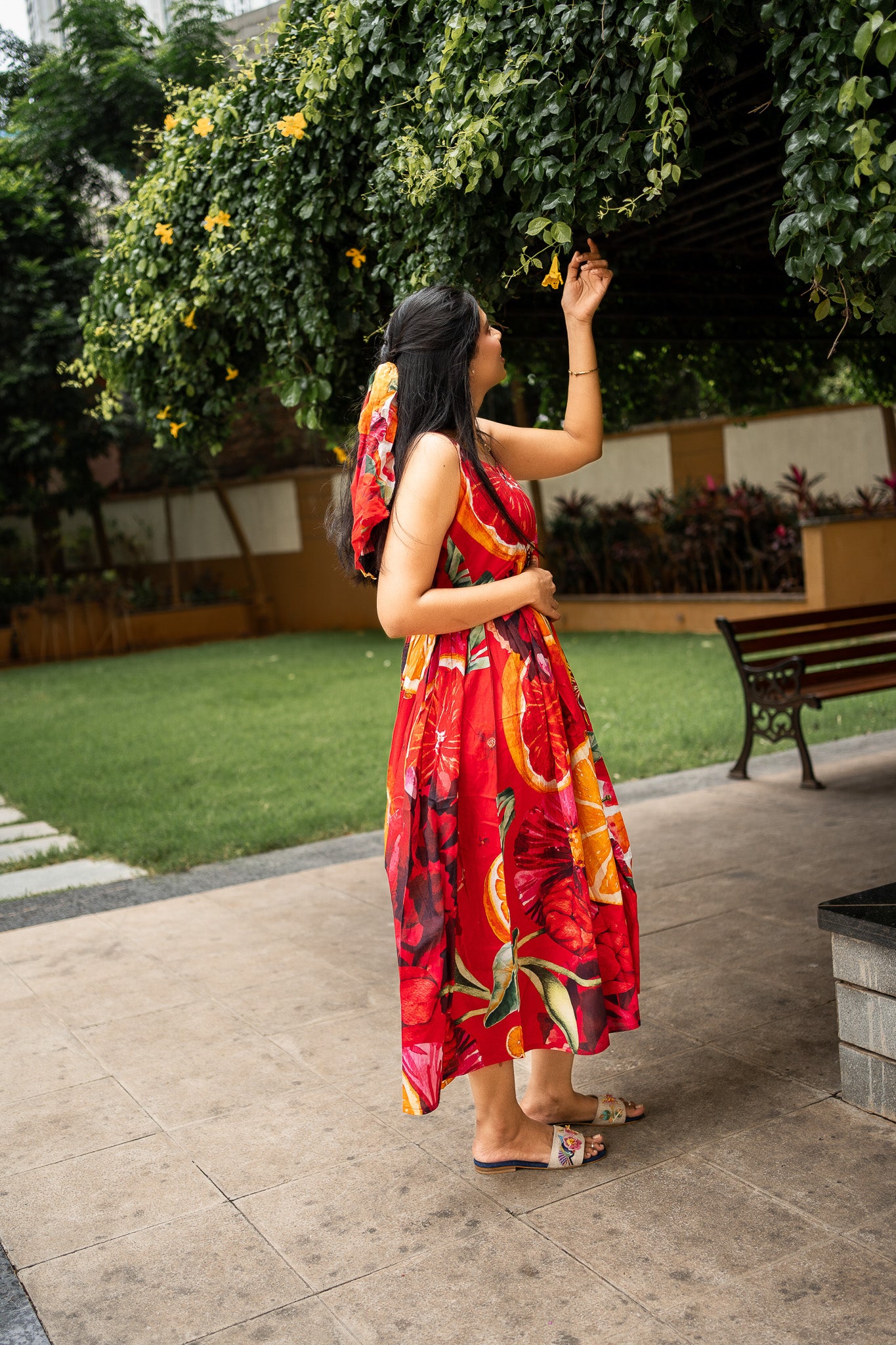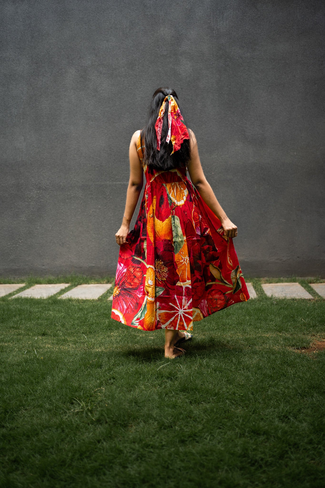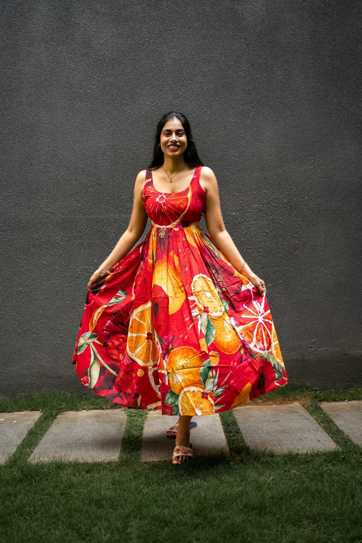 Featuring Orange and Red cotton BIG Bold Fruits and florals in our signature hand drawn prints from FRUVEE Collection.