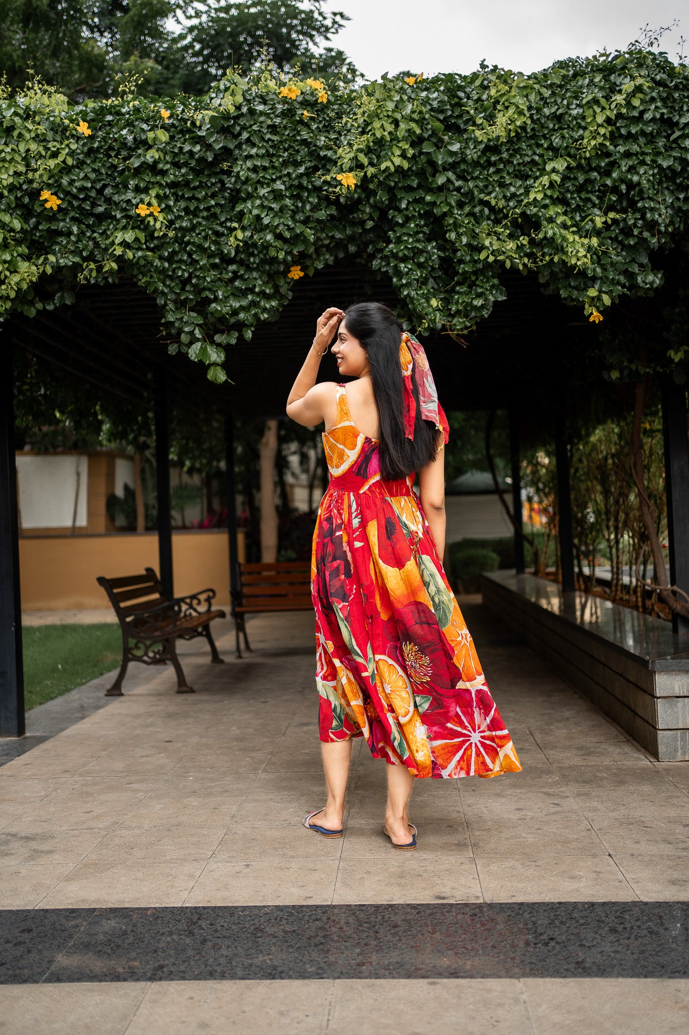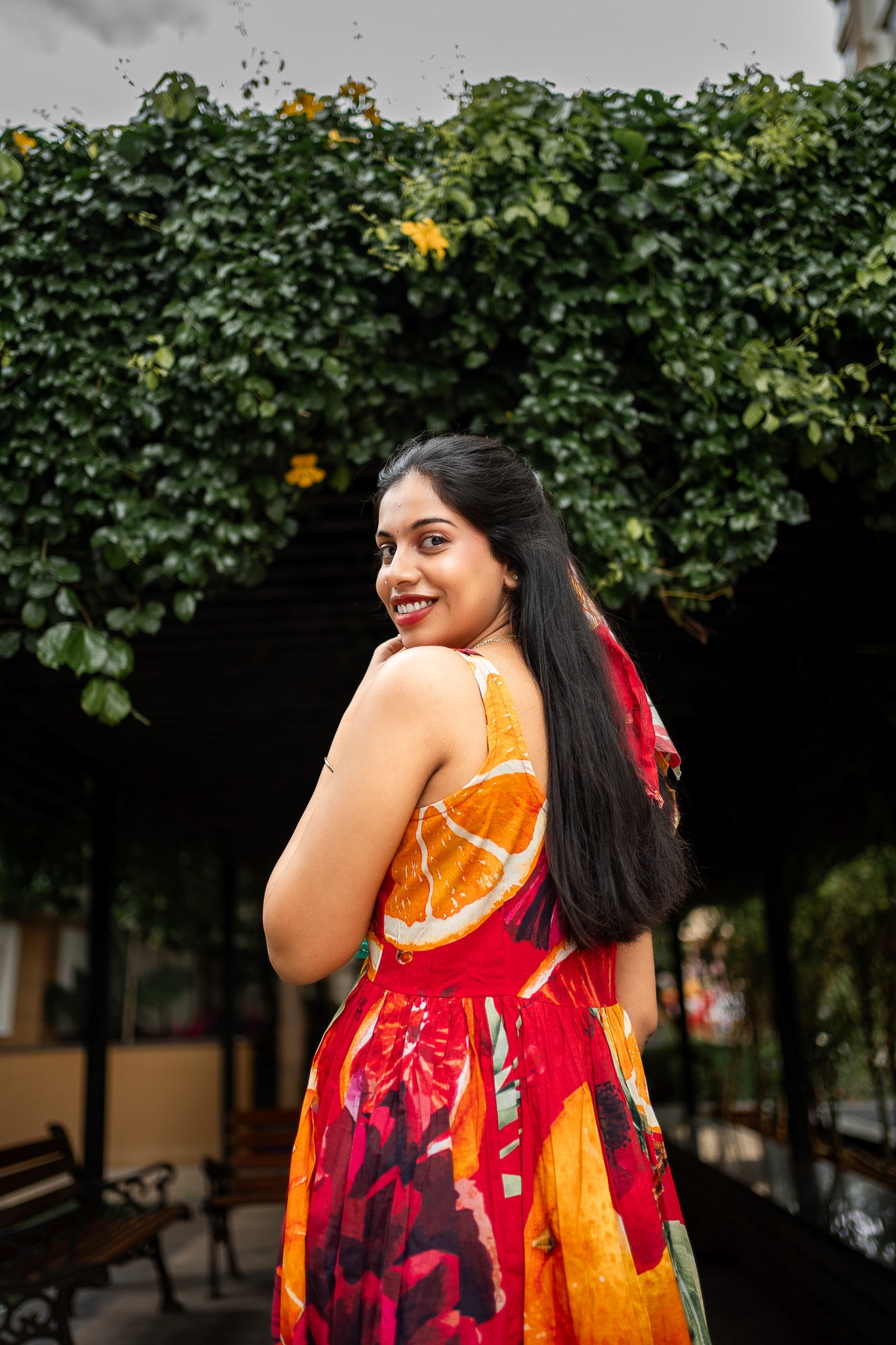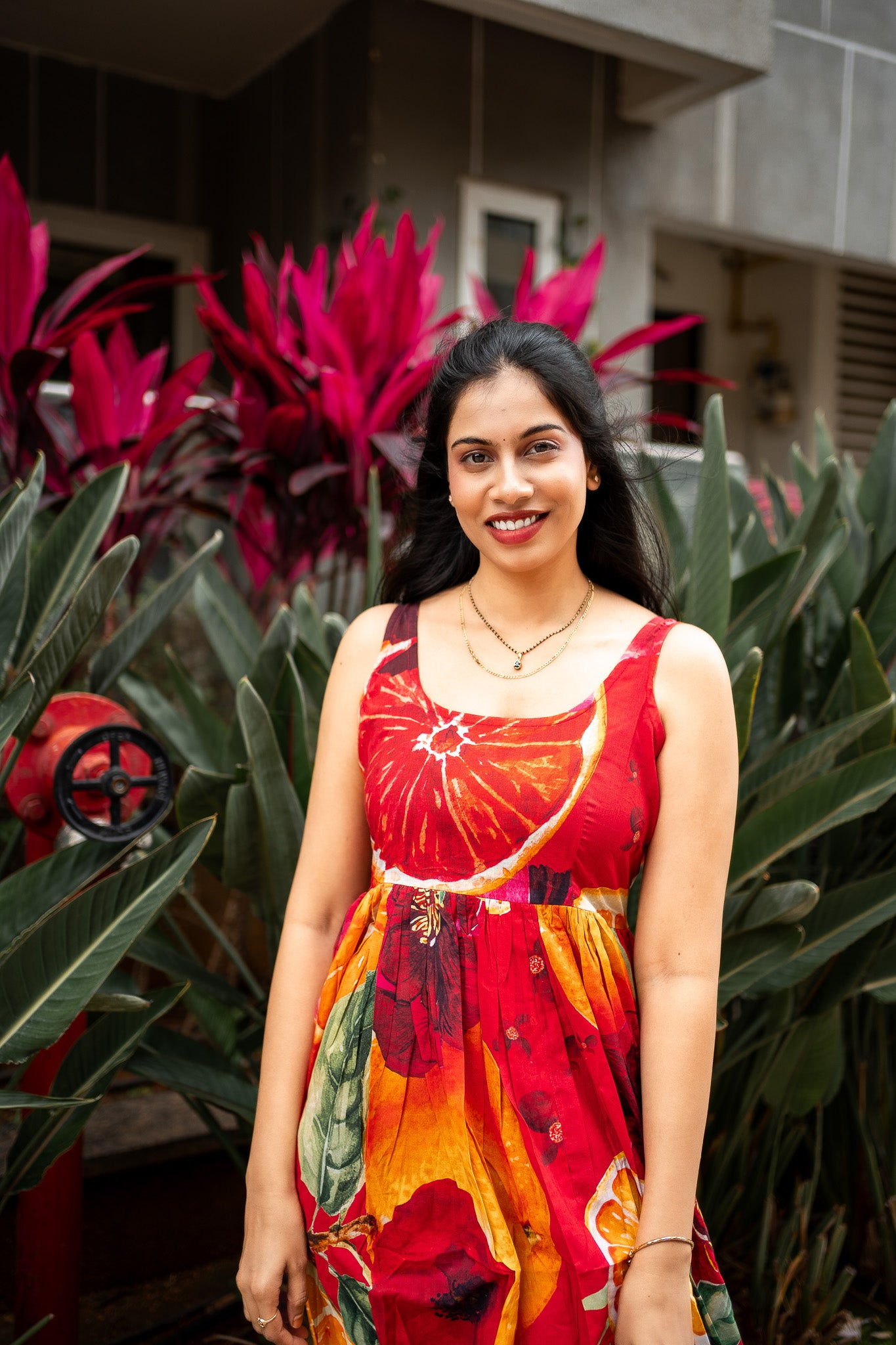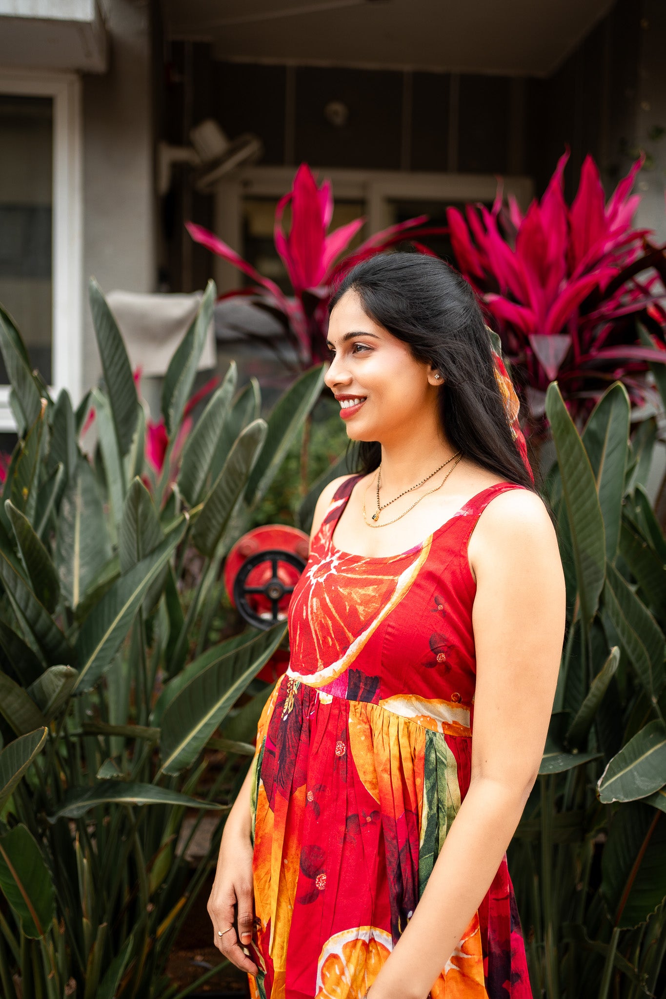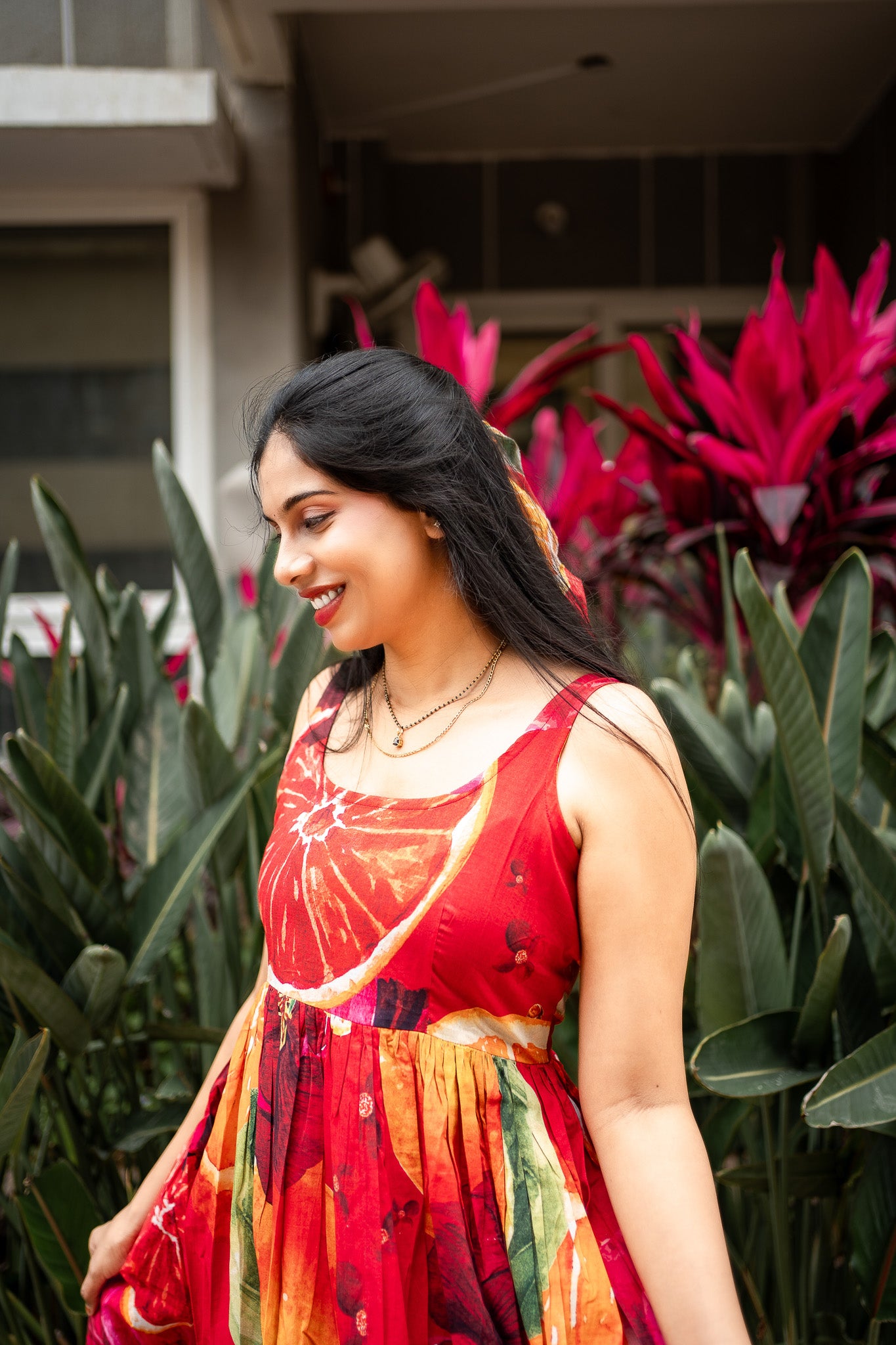 Featuring Orange and Red cotton BIG Bold Fruits and florals in our signature hand drawn prints from FRUVEE Collection.